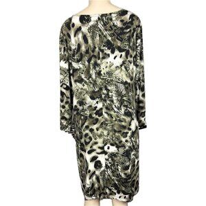 ITEM: Citiknits XL Green -Black Animal Print Crew Neckline 3/4 Sleeve Above Knee Dress