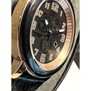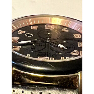 Citizen Eco Drive Chronograph Model WR100 Black Leather Strap Rose Gold Accent with Leather Band is in good condition.