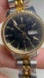 Elegant Citizen watch with gold and silver accents. Features a round dial with day display.
