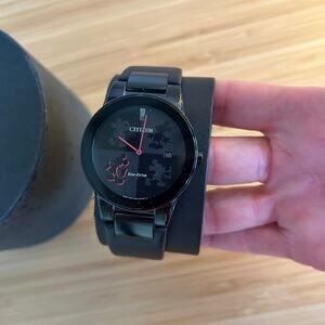 ◾️Black ion-plated stainless steel case and bracelet with red accented black dial