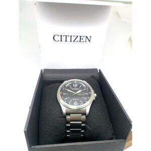 Citizen Men's Watch AW0110-58E Eco Drive Black Dial Day Date Silver Steel 44mm $325 (Z7435Y)