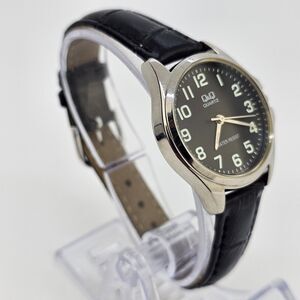 Citizen QQ Women Watch 30MM Gray Case Black Dial Black Leather Bands New Battery