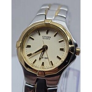 Citizen Quartz WR100 Two Tone Womens Watch 5930 New Battery Stainless Steel