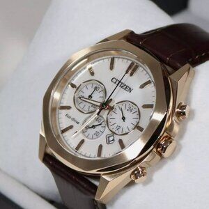 Citizen Rose Gold Tone Leather Strap Men's Chronograph Watch