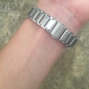 Band Silver-Tone, Stainless Steel, Bracelet, Fold Over Clasp with Push Button