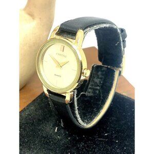 Citizen Women's Watch 9627-S117909 Quartz Gold Petite 26mm Black Leather Band (Z2487)