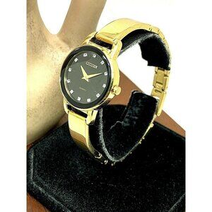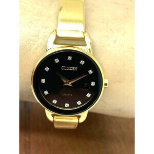 Citizen Women's Watch EZ6972-69E Quartz 26mm Black Dial Gold Tone Steel USED (Z615)