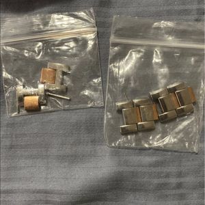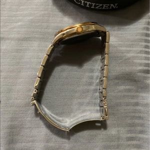 Citizen eco drive 2 tone (silver and rose gold) stainless steel women’s watch. Chronograph face with crystal bezel. It’s absolutely gorgeous. Comes with box and all paperwork. Comes with extra links. Has a 5 year limited warranty (that now has 4 years remaining). It’s an eco drive so it gets its energy from sunlight. Amazing watch. Originally $875. Has maybe 3 months of wear on it and obviously not worn everyday for those 3 months-practically brand new. Extra links will be included. STEAL DEAL!