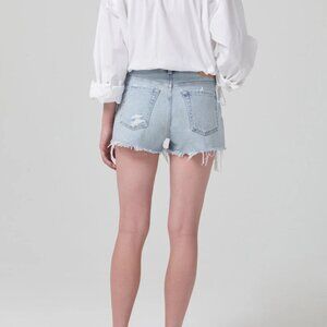 The perfect pair when you're bound for warmer weather. These vintage-inspired shorts have an easy, boyish fit with distressed hems.