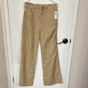 Add a touch of class to any look with these pure cotton utility trousers showcasing a versatile, khaki hue! Featuring a voluminous, wide leg, a high rise waist, and back flap pockets for an effortlessly chic and refined everyday style.