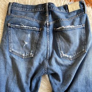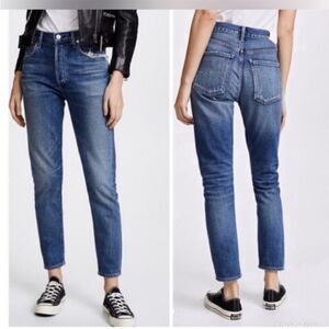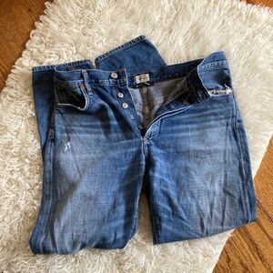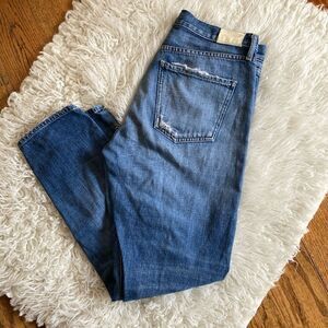 Stylish high rise jeans. Classic blue denim. Perfect for any occasion.