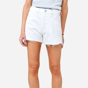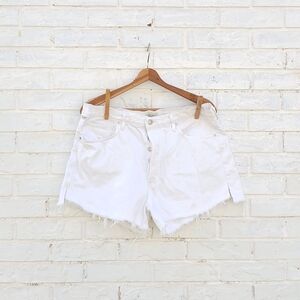 Stylish and versatile white denim shorts perfect for any casual outing. Enjoy comfort and fashion with these must-have shorts. Very good condition, Women's size 31. Button Fly. Approximate flat lay measurements Waist 16 inches, Rise 12 inches, Inseam 3 inches.