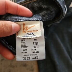 5 pockets, top stitching and logo embroidered detail on back pocket.