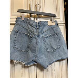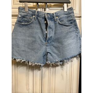 Citizens Of Humanity Women's High Waisted Button-fly Frayed Hem Marlow Denim Shorts Blue Size 28