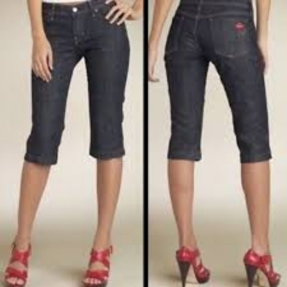 like new, no stains,no holes , lips on back pocket with COH size 28 bisou #259 stretch , bardot capri stud detail on pockets , silver button.7 " rise , inseam 16 "