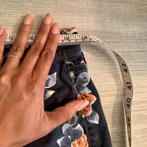 Features: Floral Print, Five Pocket Style, Raw Hem, Button Fly, High Rise. 97% Cotton, 3% Lycra.