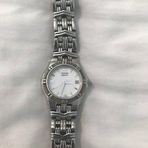 This women's Citizen watch looks and works great. No signs of wear on the chain strap or face and it is water resistant. I replaced the battery when I listed the item but since it hasn't been used it needs a new battery now. This watch was made in Japan and is item #1010-M14304.