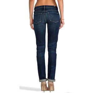 98% cotton, 2% polyurethane. 14" in the knee and 14" at the leg opening. Slight whiskering along front pockets. Intentional fading throughout. Manufacturer Style No. 1278E-357