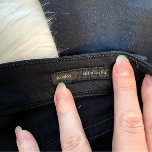 These are Citizens of Humanity jeans in the Avedon style- mid rise. They are a slick skinny leg. They are a size 25. You can see some puckering of the fabric near the crotch/inner thigh area but when worn, you can’t tell. On a flat lay, the waist is approx 11.5” and the inseam is approx 28.75”. Please ask for any other measurements.