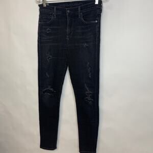 Citizens of Humanity Black Rocket High Rise Skinny Distressed Jeans Sz 26