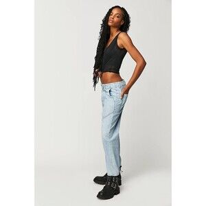 New with Tags, list price $288, Anthropologie Brand Citizens of Humanity women's Faded Light Blue Roma Pony Boy Utility Low Slung Tapered Button Fly Jeans, size 25 x 25 inch inseam, 4 silver button fly front closure, front slash pockets with back patch pockets, high rise, Relaxed Slouchy Baggy Fit, tapered leg with 14 inch leg opening.