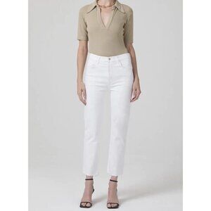 Citizens of Humanity Daphne High-Rise Raw Hem Cropped Jeans White Women Size 33