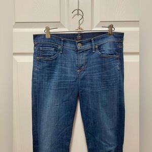• Mid rise, zip fly with button closure, five-pocket silhouette