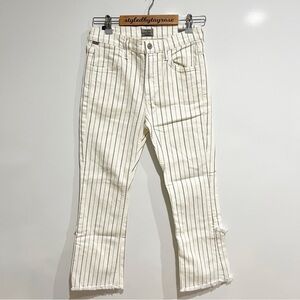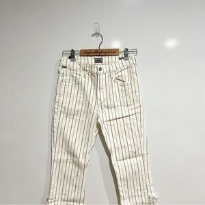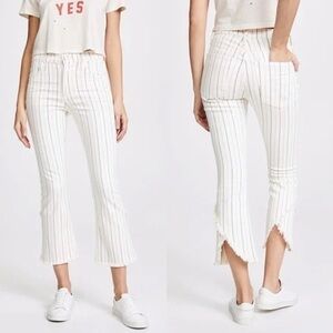 Made in Los Angeles, these striped high rise jeans, from Citizens of Humanity, feature a femme crossover kick flare.