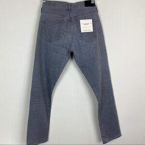 Features: Slouchy yet slim, high rise, button fly, factory distressed.
