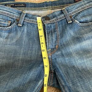 In great used condition. Flared jeans. See photos for measurements. Color in photos with measurements are accurate.