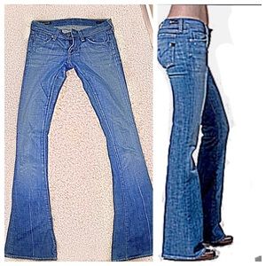 CItizens of humanity Ingrid 002 low rise jeans. These flare jeans feature 5-pocket styling & a single-button closure. Signature 'h' stitching at back pockets and whiskering at front. Very mild distressing. Size 24 with some stretch. Like new! **no trades
