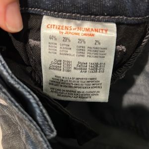 Like new. Probably worn twice. Black and blue. Tight and stretch. Not worn out at all