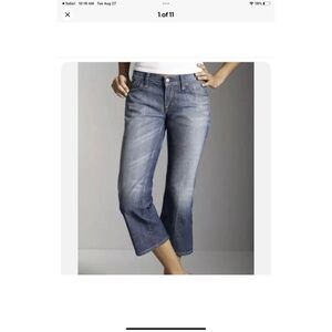 Citizens of Humanity ‘Kelly’ Jeans, Size 25/2. Low waist, cropped. Slight distressing, whiskered, light stretch. Flat lay 30.5” L, 7.5”R, 23”I, 14.5”w. #citizens #croppedjeans #lowrise