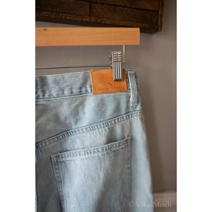 100% cotton, Wide-leg silhouette, Side slant and back patch pockets, Lace-up fly, Machine wash