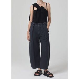 Work wear trousers from CoH in “washed black”. The pants are meant to look distressed in the color treatment. Think of dickies or carhartts that have softened with age. Please check pictures for measurements.