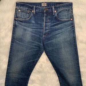 Citizens of Humanity Rowan jeans. Relaxed slim fit. High waist. Button fly. Five pocket styling. Salesman sample prototype. Tag says size 32, but runs small. Inseam 28”. Waist laying flat is 17”. New without tags.