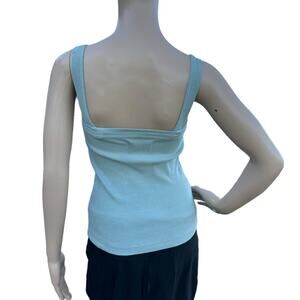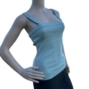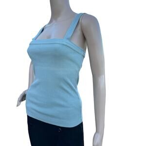 Citizens of Humanity S Ribbed Knit Tank Top Square Neck Wide Strap Light Blue