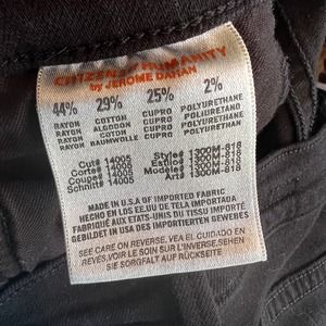 Black with Stretch to the Fabric, Super Comfortable, Barely Worn Once. Jeans Show Stretch on Front as Shown in Pictures. Five Pocket, Zipper Closure. Slick Skinny Leg. Rayon / Cotton Blend. Machine Wash