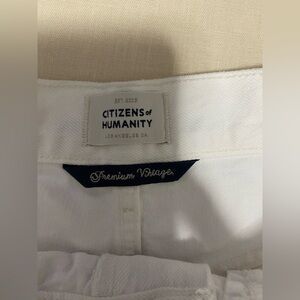 Citizens of Humanity Woman’s White Marlow Cut-Off Shorts, Size 24. Premium vintage. Button Fly. Slit on the side. Good pre owned condition. See photos for measurements to ensure proper fit.