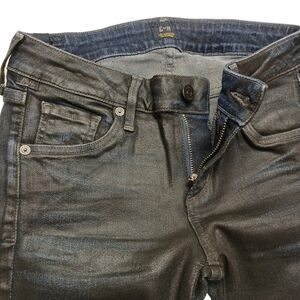 Citizens of Humanity Women's Low Rise Skinny Jeans Blue Denim in Black Leatherette Coated, Fading & Whiskers Accents Size 26