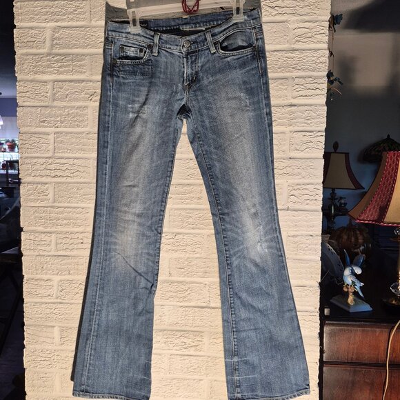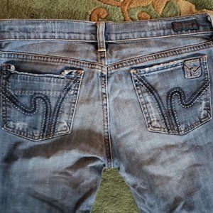 Distressed C of H jeans. size 28. Measurements are flat, waist 15" ,rise 7" ,inseam 32". Well loved.