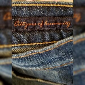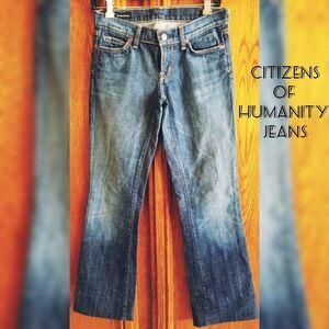 Here I have some rocking! Jean's by "Citizens of humanity Kelly stretch low waist bootcut jeans". These are in superb condition as you can see from photos, also these have been altered at the bottom as you can see from last photo, so I measured them to accordance of alteration of bottom of Jean's. I'm sure if you want them longer you can easily take the threading off, but they are altered as of right now. In superb condition. W15" X rise7" X inseam 29" 1/2 X L 37" 1/2.
