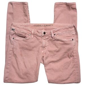 Citizens of humanity pastel dusty rose pink skinny jeans distressed size 31