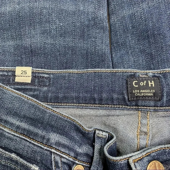 Polished studs trim the raw, split hem on these high-rise Citizens of Humanity skinny jeans. 5-pocket styling. Single-button closure and zip fly. Fabric: Stretch denim. Studded cuffs. Skinny silhouette. Ankle length. Button at waist. Zip at fly. Slant hip pockets. Patch back pockets.