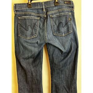 Citizens of Humanity Kelly low waist bootcut blue jean. Size 28 please notice hole on the bottom of each leg. I think probably from wearing heels with them. Pockets have a little fray but that just might be the design. They are so nice!