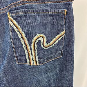 These Citizens of Humanity Ava #142 jeans have a straight leg, low waist and a bit of stretch. They have a zip fly and button closure.