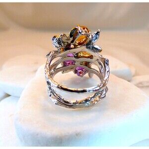 Citrine Amethyst Sterling Silver Cocktail Ring Botanical Vines Size 7.5