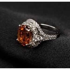 Citrine & CZ Ring Sterling Silver 925 Size 5.5 Elegant JCL China