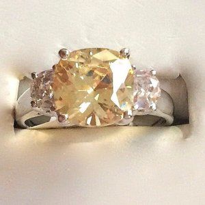 Citrine Cocktail Ring Size 10 Yellow Cubic Zirconia Simulated Silver Plated