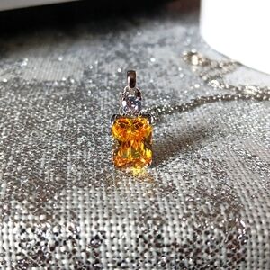 Citrine & Cz Pendant Necklace